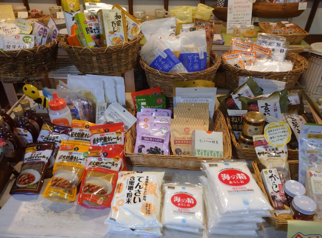 本店にてマクロビオティック商品を販売中! 海の精(塩)、甜菜糖、オリゴ糖、味の母、ヒカリソース、ケチャップ 豆乳マヨネーズ、ヤマヒサの醤油ほか メープルシロップ、ココナッツオイル、こめ油、オリーブ油、カレールウなど各種。 小腹がすいた時のちょっと一口のお菓子...